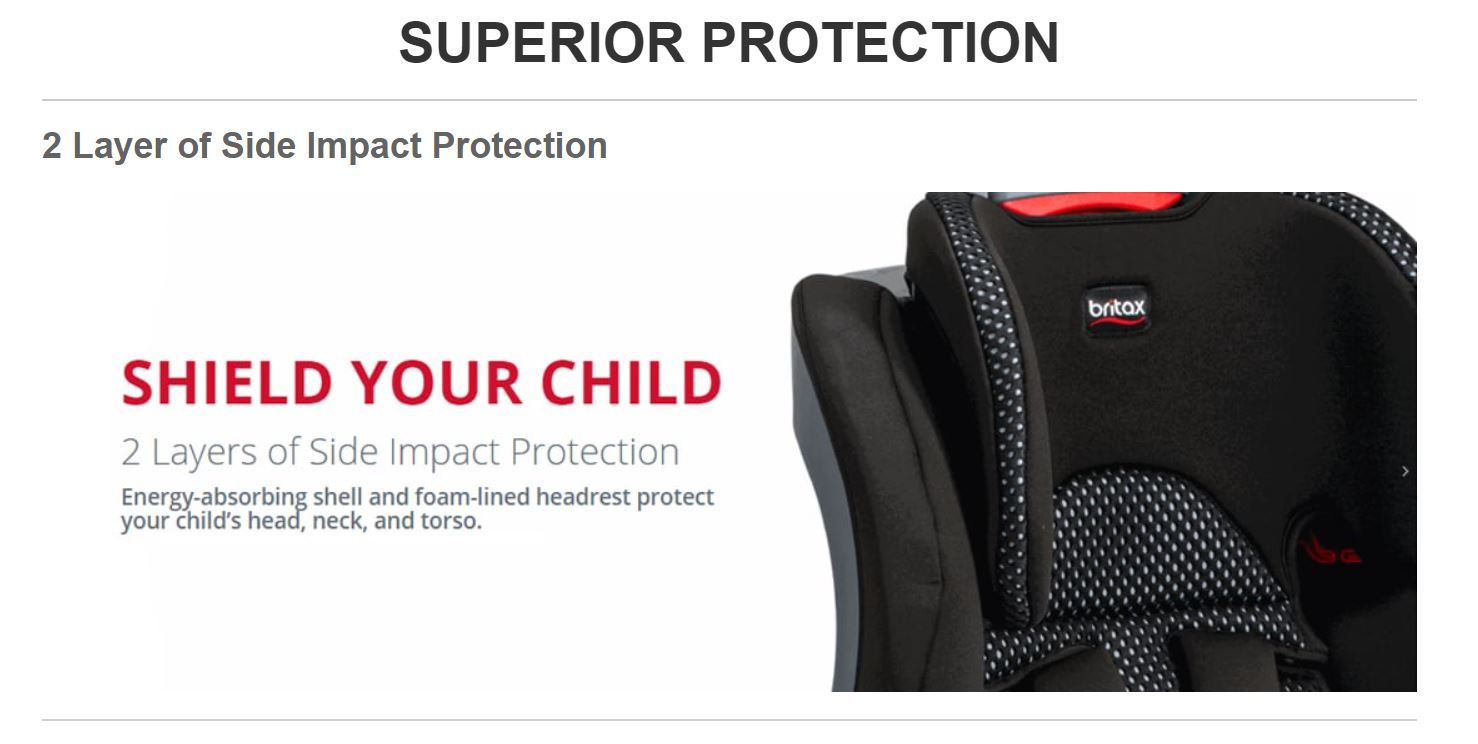 - 2 Layers of Side Impact Protection: Energy-absorbing shell and foam-lined headrest protect your child’s head, neck, and torso.