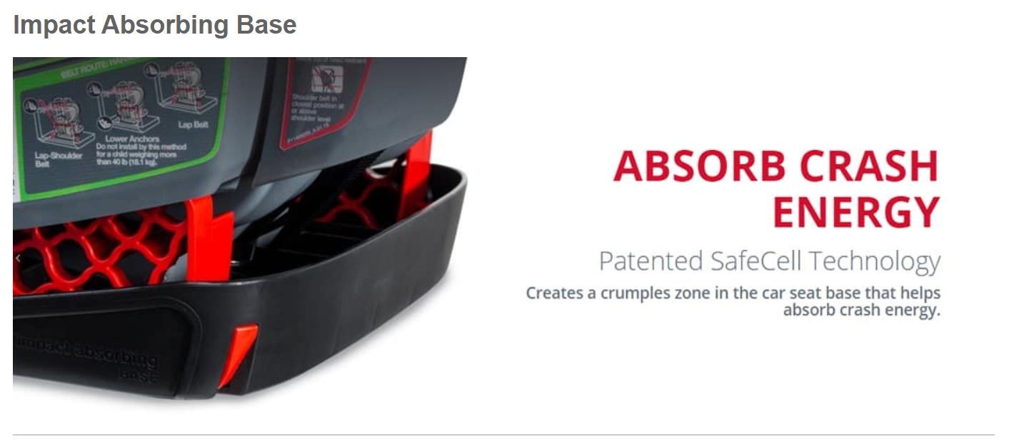 - SafeCells in the car seat base create a crumple zone that absorbs crash energy to help keep it away from your child.